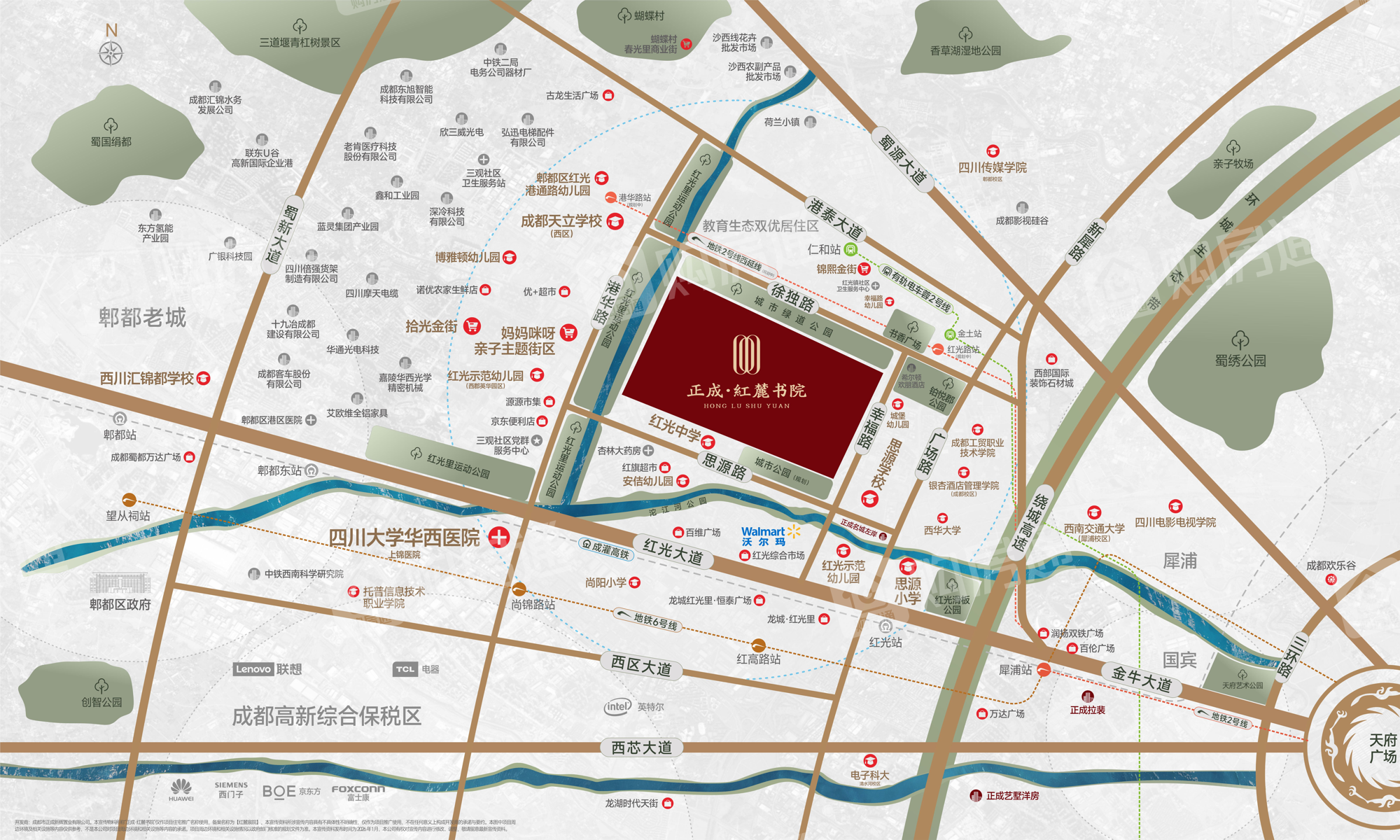 有轨电车蓉2号线支线金土[公交站]直线距离约1081米